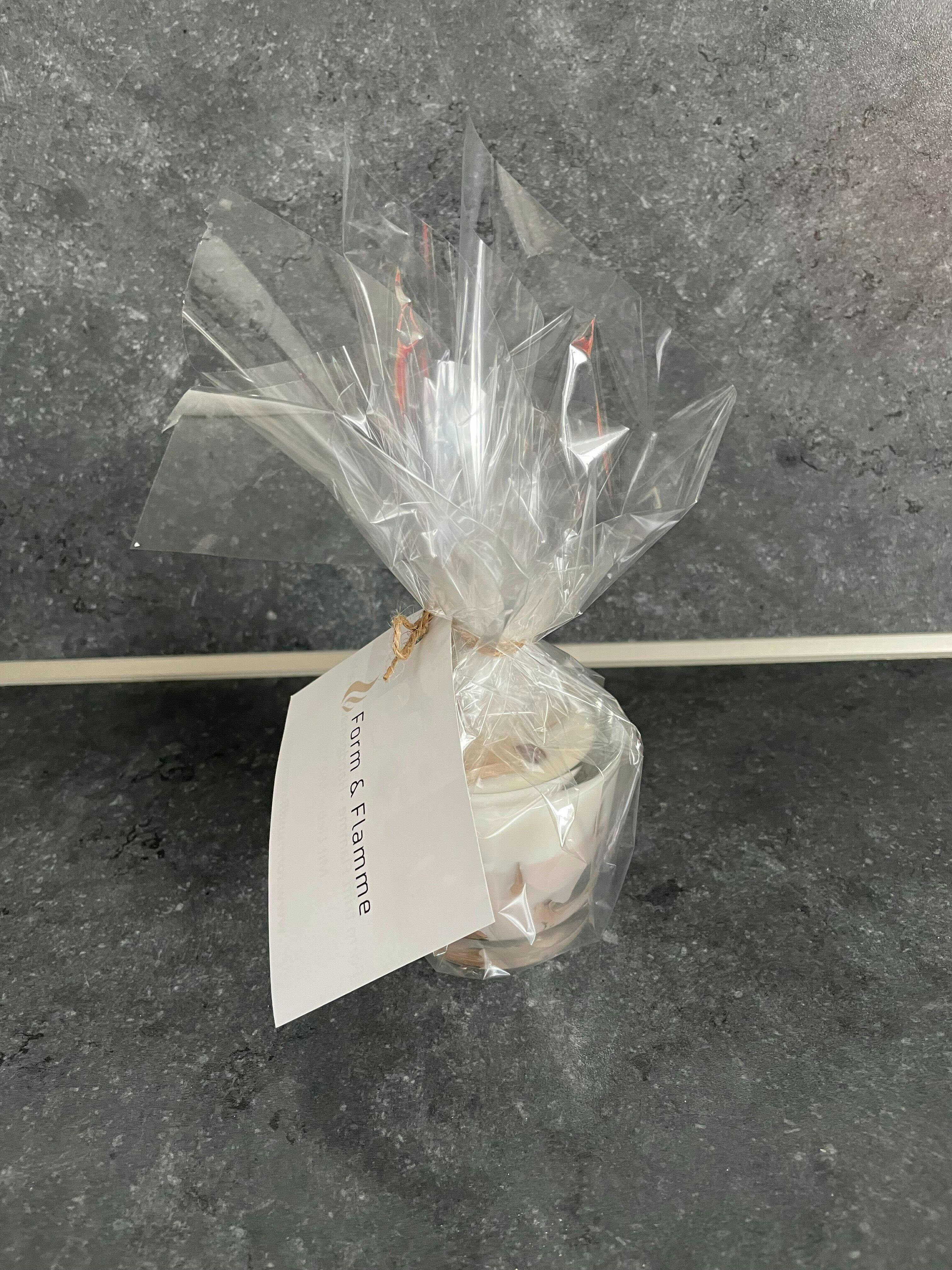 - Handgefertigte Design-Ästhetik - Jede Kerze wird von Hand gefertigt und ist ein Unikat. Das klare Gelwachs verleiht ihr eine besondere visuelle Leichtigkeit und das Sojawachs eine warme, elegante Basis.
