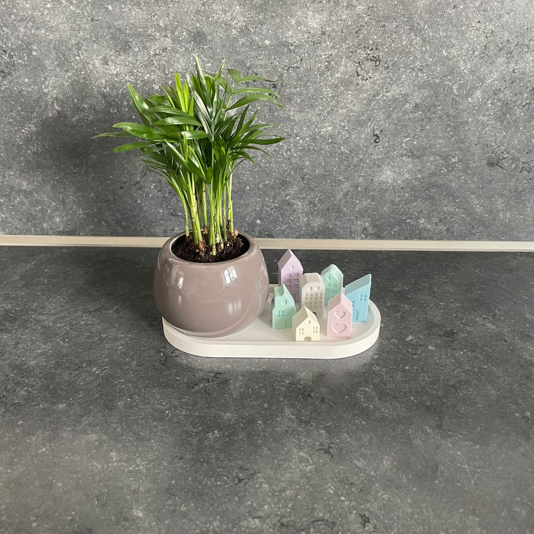 Jedes Häuschen ist ein handgegossenes Unikat, gefertigt mit Liebe zum Detail. Die klaren Linien und harmonischen Farbtöne fügen sich wunderbar in moderne Einrichtungsstile ein - von skandinavisch bis minimalistisch.