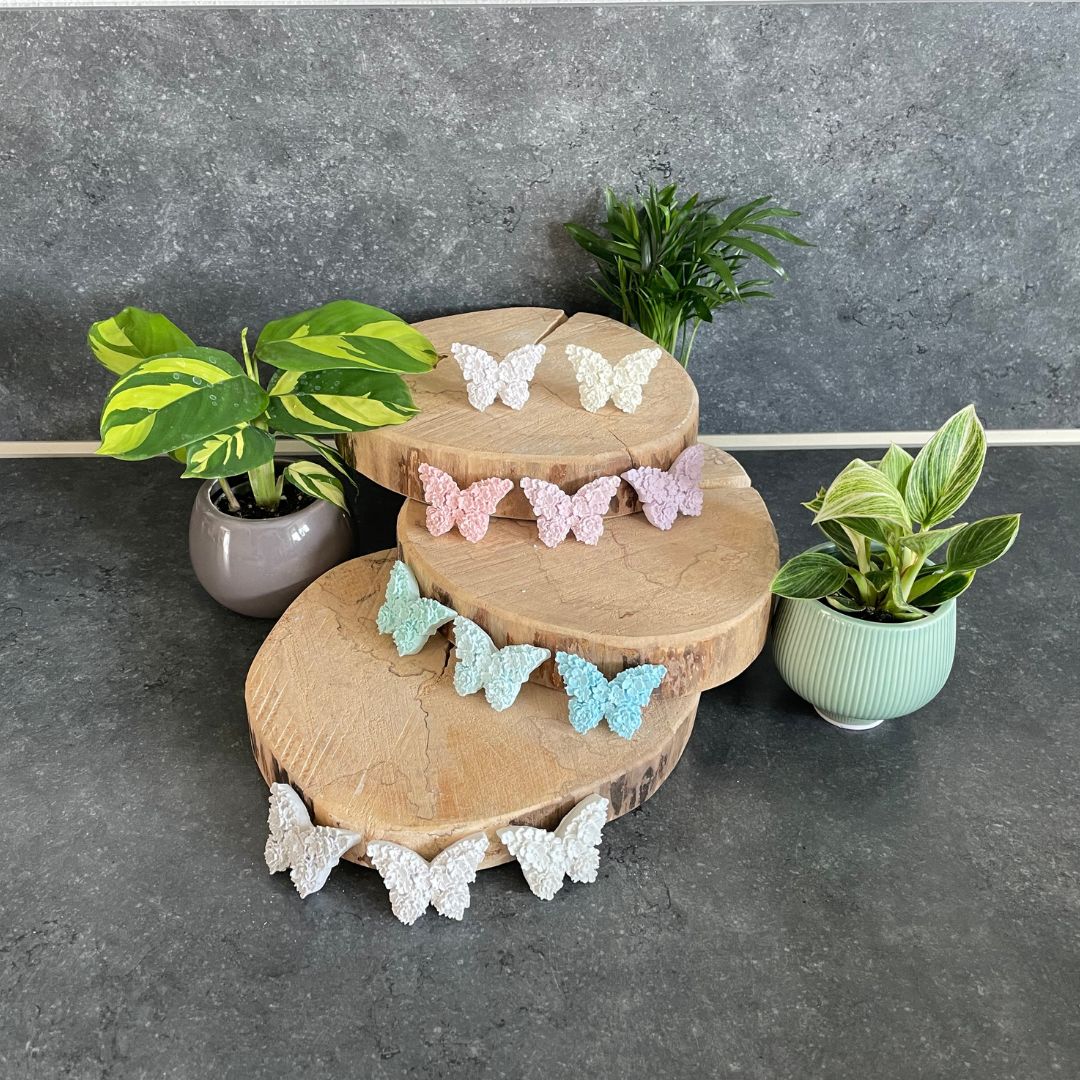 Verleihe deinem Zuhause oder besonderen Momenten eine sanfte, verspielte Note mit unseren handgegossenen Schmetterlingen aus Gips. Wahlweise in Weiß oder Farbe, sind diese detailreichen Deko-Elemente echte Hingucker - egal ob im Wohnzimmer, Kinderzimmer oder bei besonderen Anlässen wie Taufen, Hochzeiten oder als liebevolles Andenken.