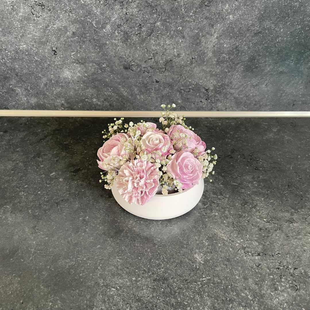 Dieses einzigartige Blumengesteck kombiniert eine handgemachte Schale aus Gips mit kunstvoll gefertigten Blumen aus Gips und dekorativen Trockenblumen. So entsteht ein zeitlos schönes Arrangement, das ohne Pflege für immer frisch bleibt.