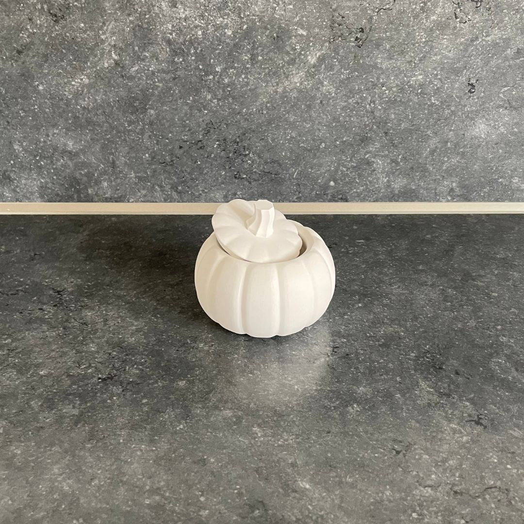 Unsere handgemachte Kürbisdose aus Gips vereint stimmungsvolle Herbstdeko mit praktischer Funktion. Die detailverliebte Form macht sie zu einem echten Blickfang, während der Deckel Platz für kleine Schätze bietet - ob Süßigkeiten, Schmuck oder liebevolle Botschaften.