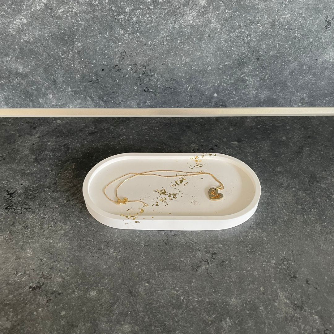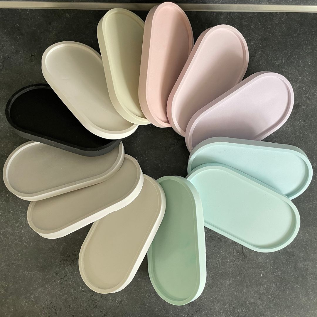 Diese handgegossene ovale Platte aus hochwertigem Gips oder Beton vereint schlichte Eleganz mit vielseitiger Funktion. Ob als Deko-Unterlage für Kerzen, Schmuckablage, Schlüsselplatte oder stilvolles Element in deinem Interior - sie passt sich deinem Stil perfekt an.