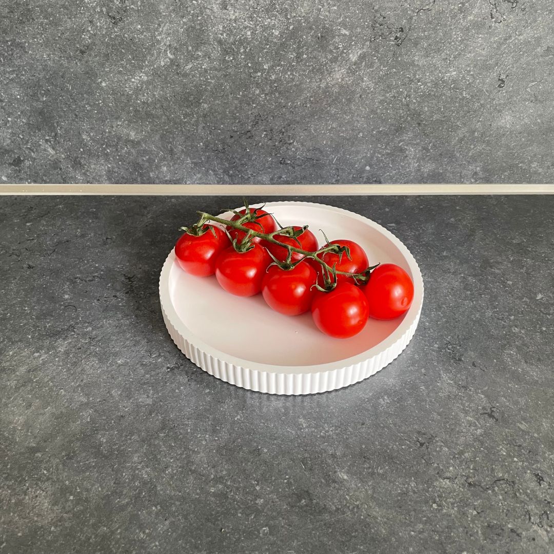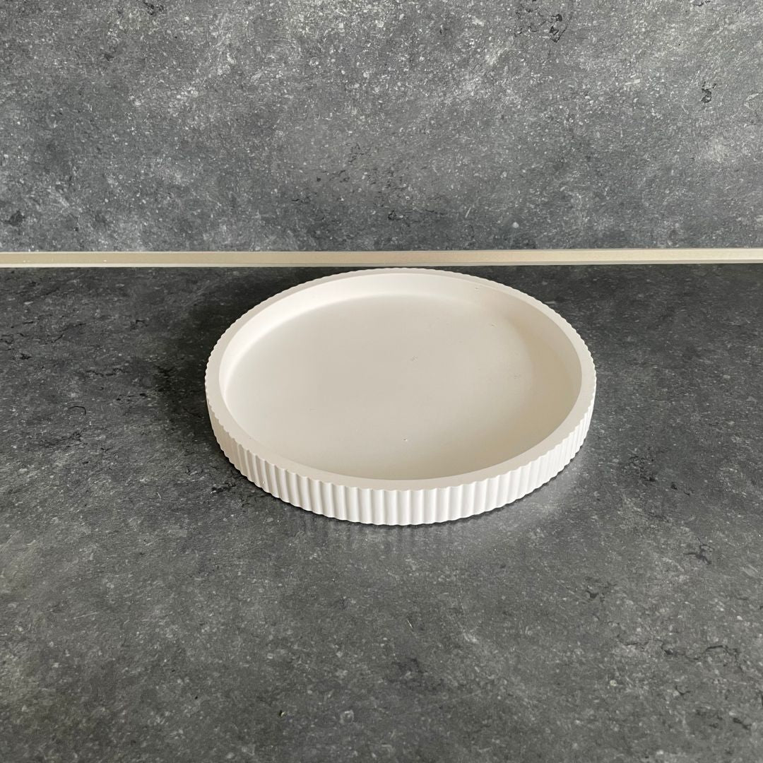 Die feine Riffelstruktur sorgt für einen modernen, skulpturalen Look - ob als Kerzenuntersetzer, Ablage für Schmuck, Obstschale oder minimalistisches Deko-Element. Jede Platte ist ein handgefertigtes Unikat - mit Liebe zum Detail gegossen.