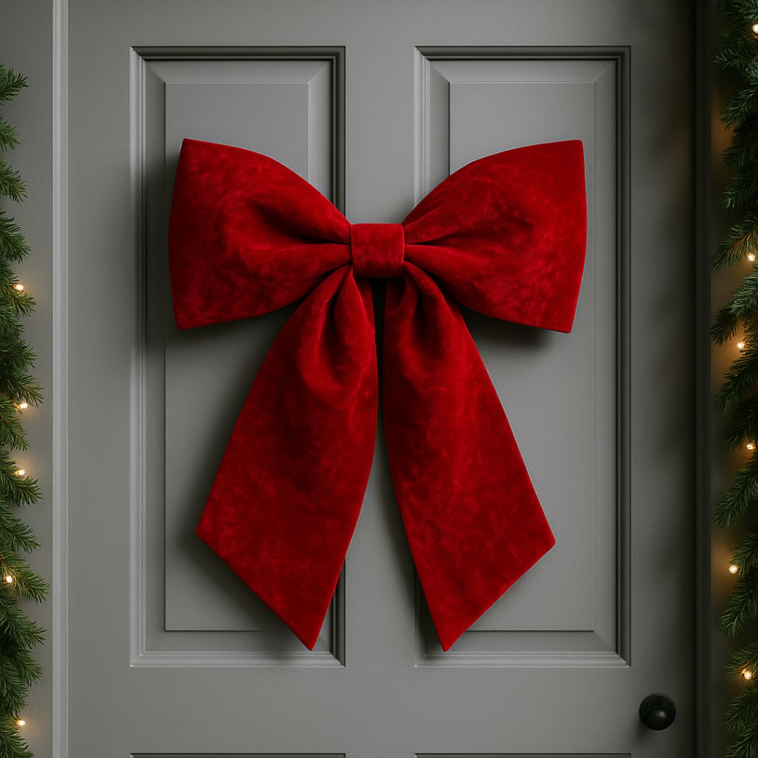 Diese große Weihnachtsschleife aus hochwertigem Stoff ist das perfekte Accessoire, um Türen, Fenster, Geländer oder Weihnachtsbäume festlich zu schmücken.